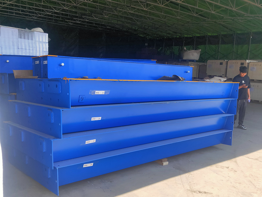 采購背景: 河南萬糧國際貿(mào)易有限公司印度尼西亞糧貿(mào)工廠原有一臺3.2mx16m定額100噸地磅,由于秤臺變形嚴重,計量不精確,此次委托恒瑞稱重重新生產(chǎn)加工一臺加厚型出口分體式數(shù)字汽車衡。此地磅采用安鋼Q235B材質(zhì)加厚中板,采用四節(jié)八塊分體式組合結(jié)構(gòu),便于出口貿(mào)易集裝箱運輸。同時配備柯力出口型數(shù)字傳感器,柯力20008出口型英文數(shù)字儀表,此批分體秤已順利交貨裝車,完成交付。